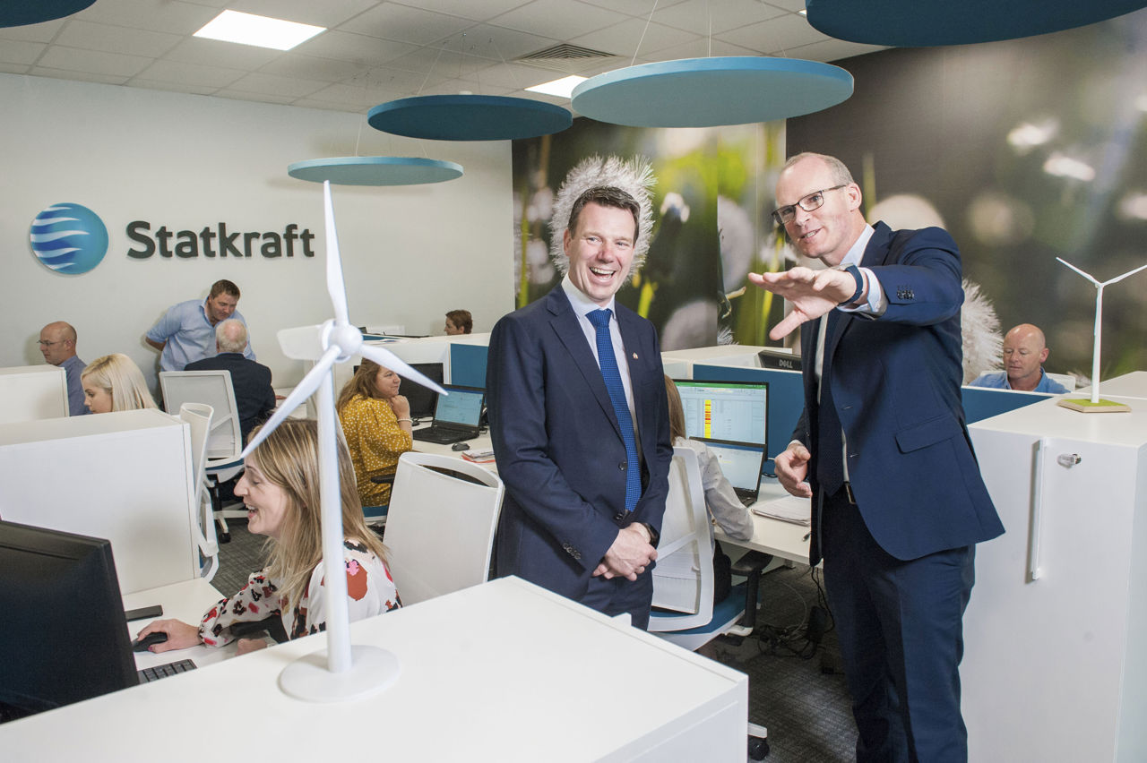 Minister for Foreign Affairs, Simon Coveney shares his vision of the Irish renewable sector with Statkraft Ireland Managing Director, Kevin O’Donovan at company’s Irish headquarters in CorkCaption